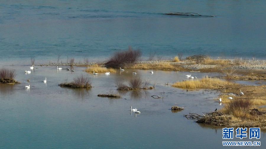 ??成群的大天鵝在水面上游弋,為冬日高原增添了勃勃生機。新華網(wǎng)發(fā)(宋忠勇 攝)