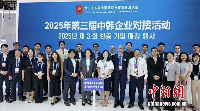 2025年9月9日,福建廈門,在第二十五屆投洽會上,中韓企業(yè)高管、機構(gòu)代表在交流會后合影留念,右七為韓國貿(mào)易協(xié)會上海代表處首席代表樸善景。記者 林卓瑋 攝