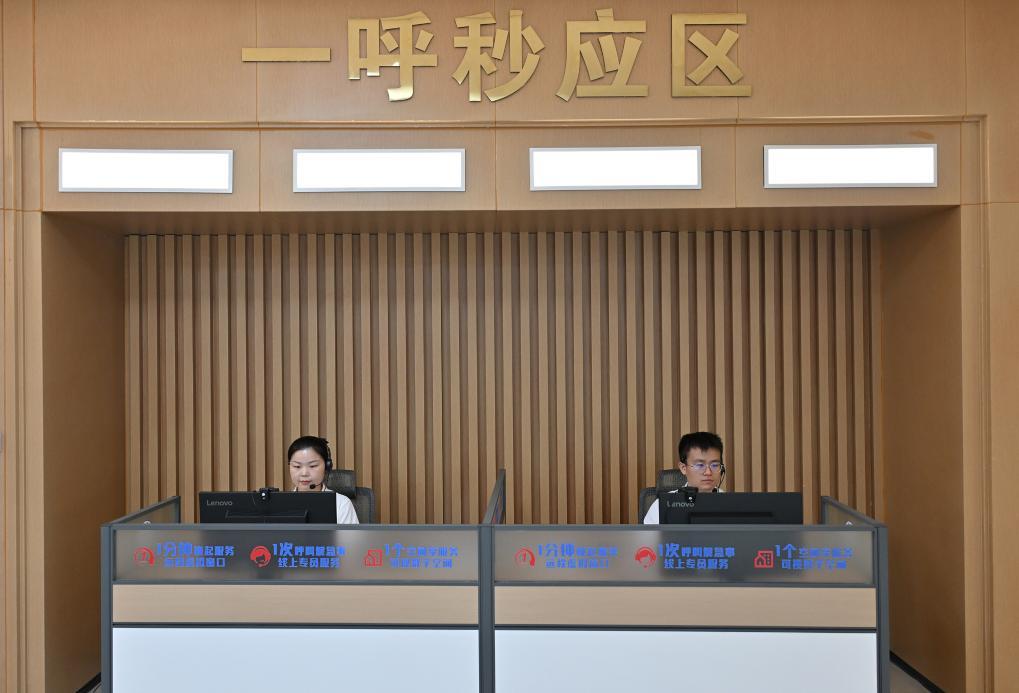 在“一呼秒應(yīng)區(qū)”,記者看到兩名工作人員戴著耳機,緊盯屏幕?!巴ㄟ^遠程虛擬窗口喚起服務(wù),提供線上專員服務(wù)解決急事。”工作人員說,企業(yè)在線上有任何辦事需求、服務(wù)需求,都可以通過平臺呼叫。