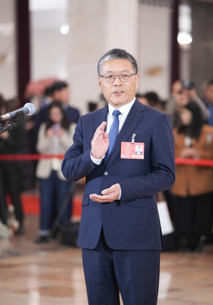 3月11日,第十四屆全國人民代表大會(huì)第三次會(huì)議第三場“代表通道”集中采訪活動(dòng)在北京人民大會(huì)堂舉行。這是全國人大代表李東林接受媒體采訪。新華社記者 李笑 攝