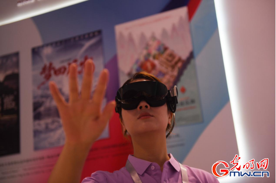 西影無界影院XR展位,工作人員在展示虛擬現(xiàn)實影院。光明網(wǎng)記者 潘迪/攝