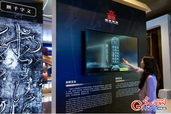 觀眾在古代碑刻數(shù)字化展位進行刻碑互動體驗。光明網(wǎng)記者趙金悅/攝