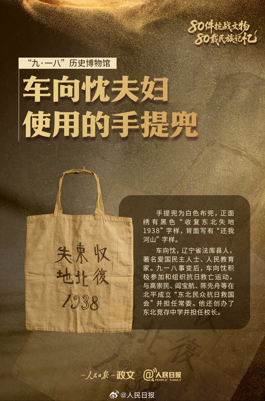 首頁 / 新聞 / 國內(nèi)新聞 / 正文 勿忘!9件文物銘記白山黑水間的抗?fàn)?/h1> 來源 : 人民日報(bào)微博 發(fā)布時(shí)間 : 2025-09-18 字體 :小 中 大 抗日志士在獄中寫下的遺書、繡有“收復(fù)東北失地 1938”“還我河山”字樣的手提兜、東北抗聯(lián)被服廠縫紉機(jī)……九一八事變爆發(fā)94周年,“80件抗戰(zhàn)文物80載民族記憶”系列報(bào)道第七期,見證白山黑水間的不屈抗?fàn)帯懹洑v史,守護(hù)永不褪色的抗戰(zhàn)記憶! 編輯 : 張曉