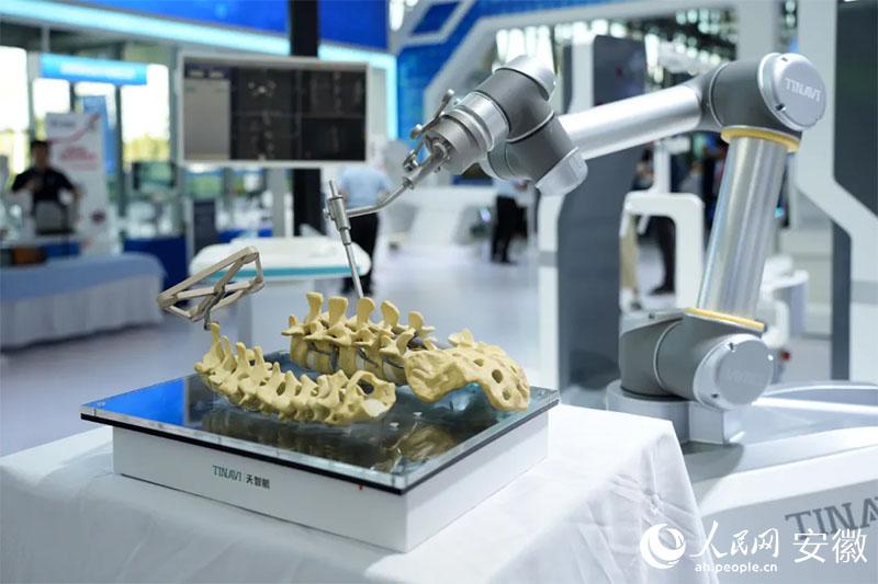 2024世界制造業(yè)大會(huì)上展出的骨科手術(shù)機(jī)器人。人民網(wǎng)記者 王銳攝