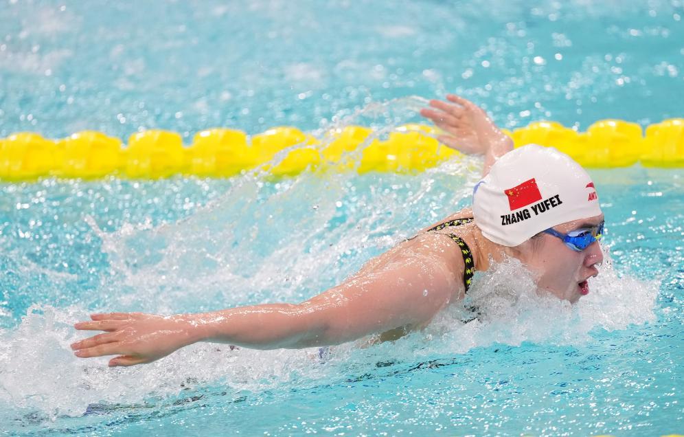 11月13日,江蘇隊選手張雨霏在比賽中。最終,她晉級決賽。當(dāng)日,第十五屆全國運(yùn)動會游泳女子200米蝶泳半決賽在廣東省深圳市舉行。新華社記者 薛宇舸 攝