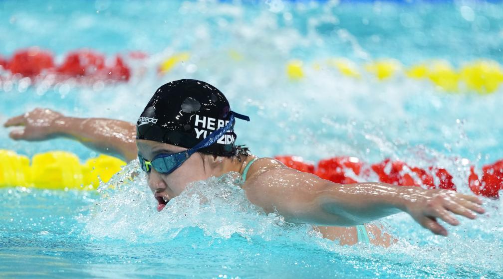 11月13日,河北隊選手于子迪在比賽中。最終,她晉級決賽。當(dāng)日,第十五屆全國運(yùn)動會游泳女子200米蝶泳半決賽在廣東省深圳市舉行。新華社記者 杜宇 攝