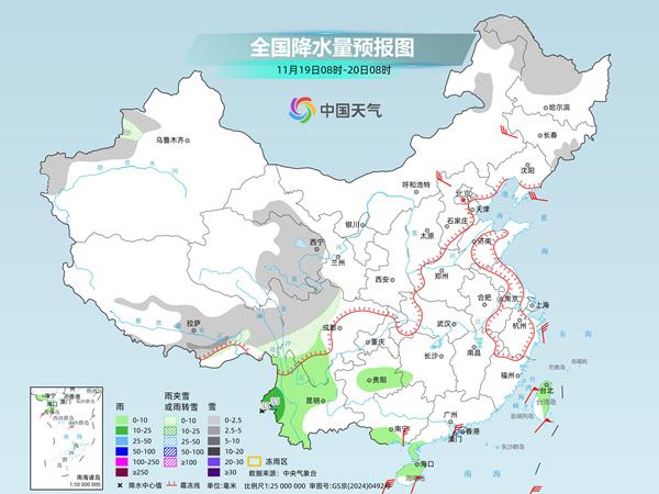 中央氣象臺(tái)預(yù)計(jì),今天,新疆南疆盆地、西藏北部和東部、青海南部和西部、甘肅河西、川西高原北部等地部分地區(qū)有小雪或雨夾雪。西南地區(qū)東部和南部、華南大部、臺(tái)灣島等地部分地區(qū)有小到中雨,其中,云南西南部、臺(tái)灣島北部等地部分地區(qū)有大雨。