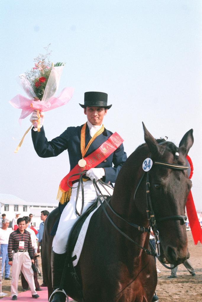 1997年10月13日,劉忠在第八屆全國運(yùn)動(dòng)會(huì)馬術(shù)比賽盛裝舞步個(gè)人賽冠軍。新華社記者 張劉仁 攝