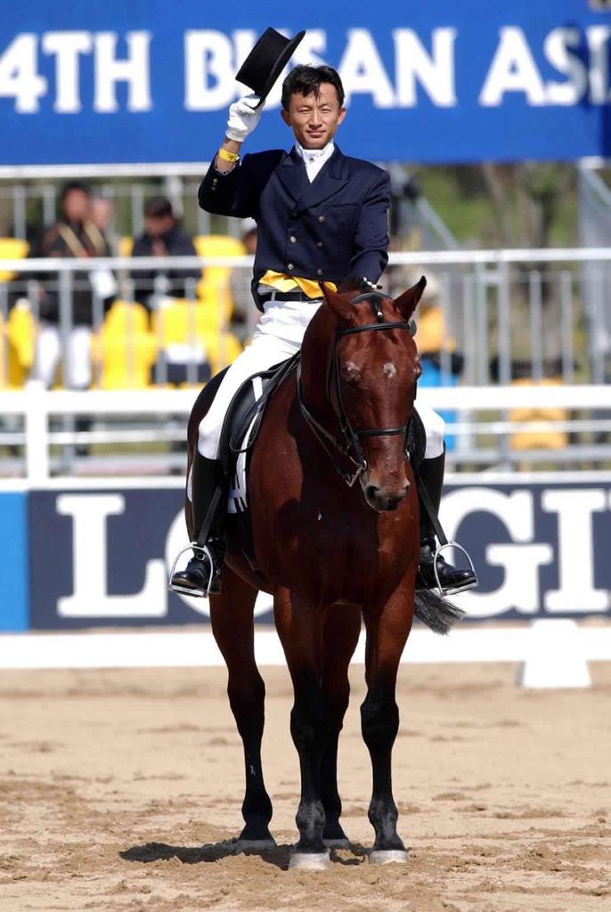 他與隊(duì)友合作拿下盛裝舞步團(tuán)體冠軍
