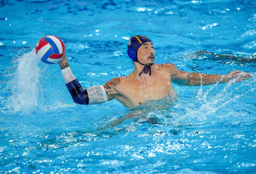 2010年11月24日,中國隊(duì)球員余利君在廣州亞運(yùn)會(huì)水球男子半決賽中。中國隊(duì)最終獲得亞軍。新華社記者 呂小煒 攝