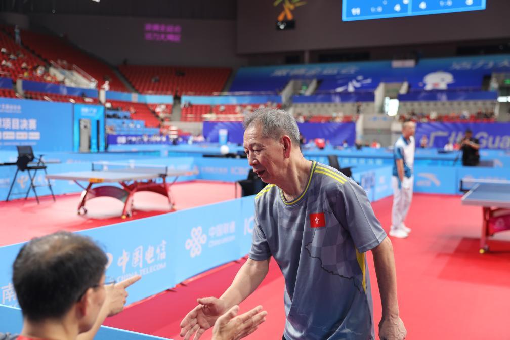 香港選手張耀釗在第十五屆全國運(yùn)動(dòng)會(huì)群眾比賽乒乓球比賽中。(組委會(huì)供圖)