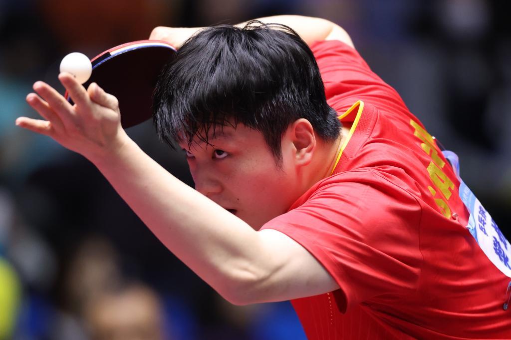 11月18日,上海隊(duì)選手樊振東在比賽中發(fā)球。新華社記者 劉續(xù) 攝