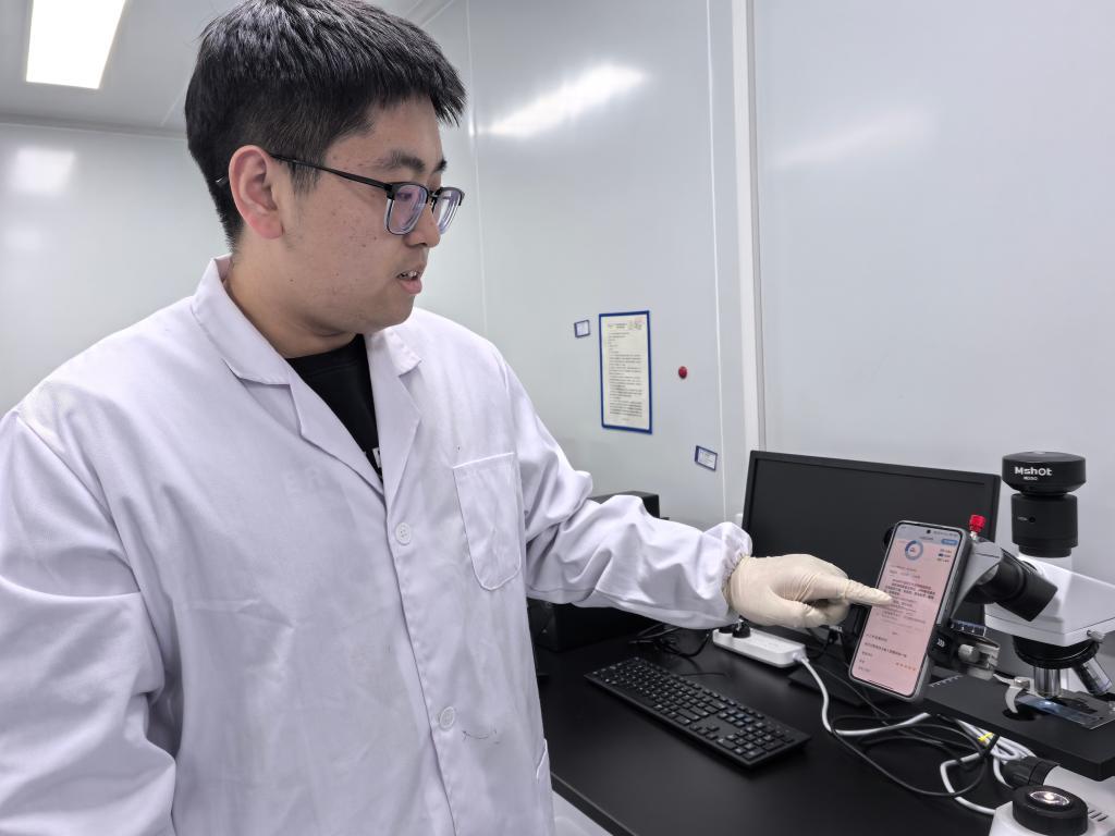 丹娜生物實驗室里,研發(fā)人員展示新開發(fā)的真菌檢測App。新華社記者楊文 攝