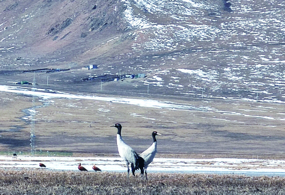 中國(guó)藏族網(wǎng)通訊 3月25日,首批黑頸鶴如約來(lái)到玉樹藏族自治州隆寶灘國(guó)際重要濕地。
