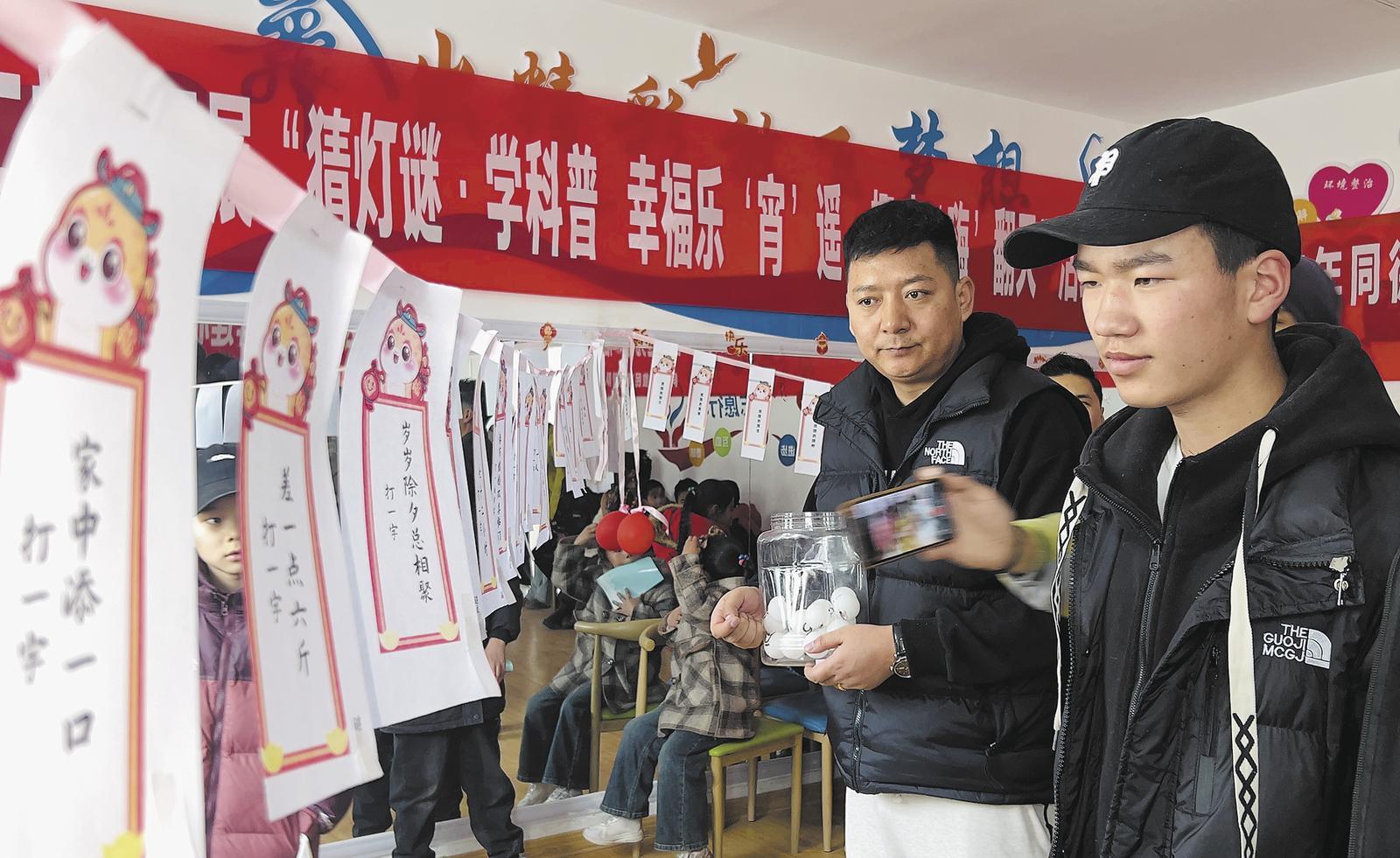 活動現(xiàn)場熱鬧非凡,猜燈謎環(huán)節(jié),小朋友舉手搶答,小小的頭腦蘊(yùn)藏著大大的智慧?;顒訉⒉聼糁i與科普知識、安全防范、生活常識等結(jié)合在一起,通過寓教于樂的方式為傳統(tǒng)節(jié)日增添一份別樣的文化韻味。