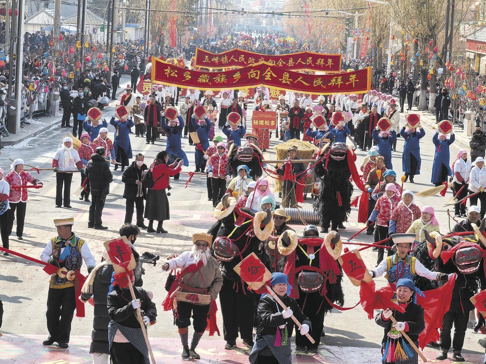 鑼鼓咚咚,嗩吶聲聲,海東市互助土族自治縣鼓樓周圍人山人海?!敖o互助全縣人民拜年了?!睙艄倮蠣斦f著吉祥話,道著祝福語,2025年互助縣元宵節(jié)系列文化活動“一鄉(xiāng)一品”文化品牌展示暨精品社火巡展活動正式啟幕。