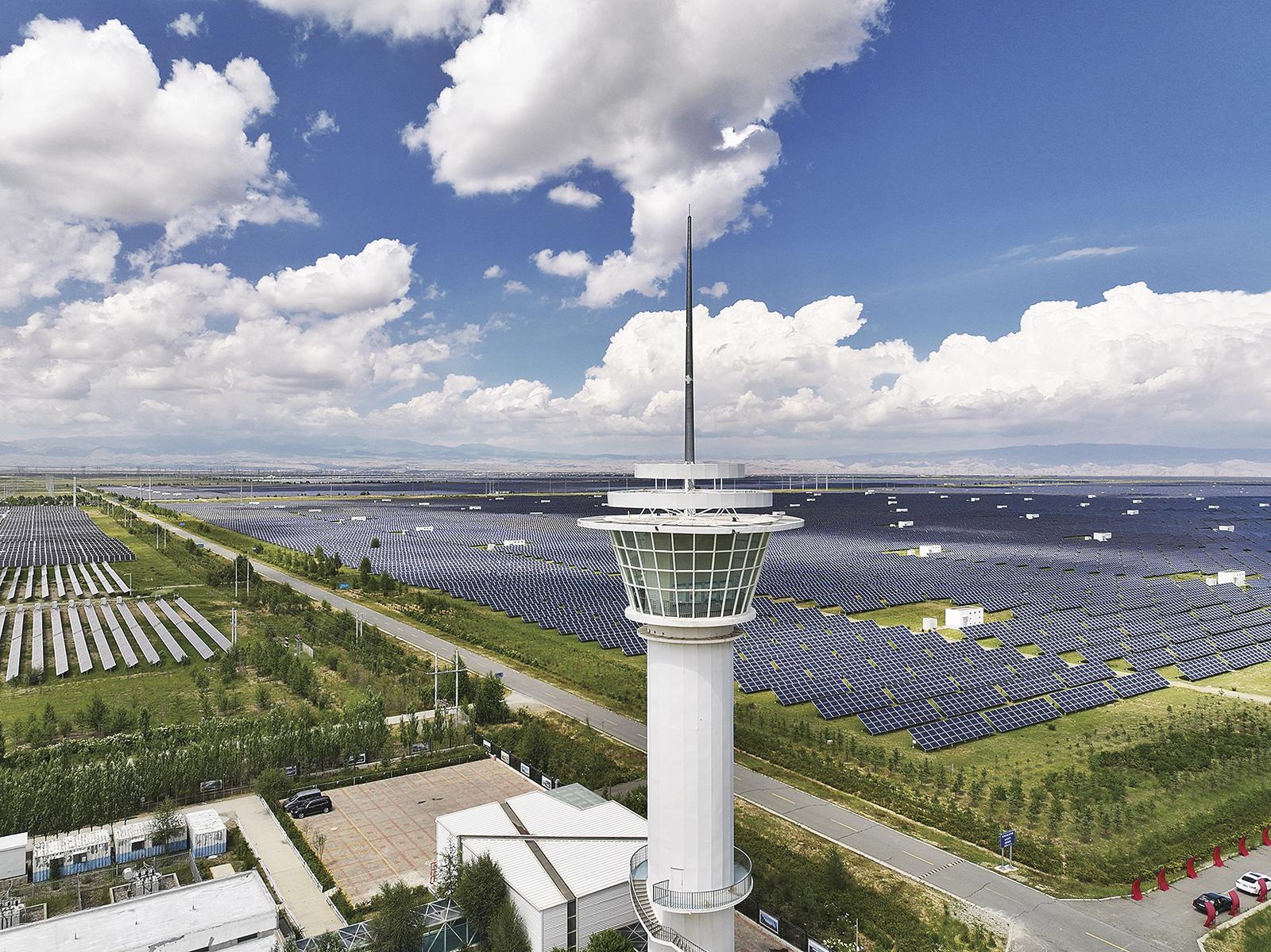 塔拉灘上的光伏“藍(lán)海”。 記者 洪玉杰 攝
