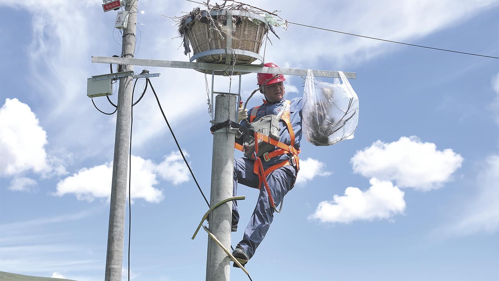 國網(wǎng)青海電力工作人員為“生命鳥巢”做好“物業(yè)服務(wù)”。