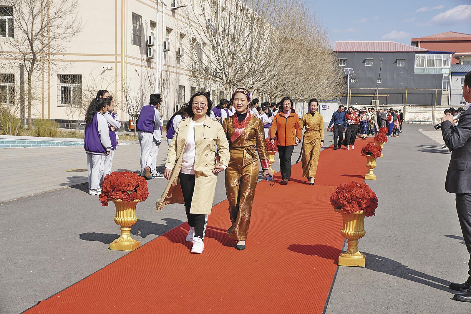 老師像“家人”一樣陪玉樹學(xué)生走成人禮紅毯。