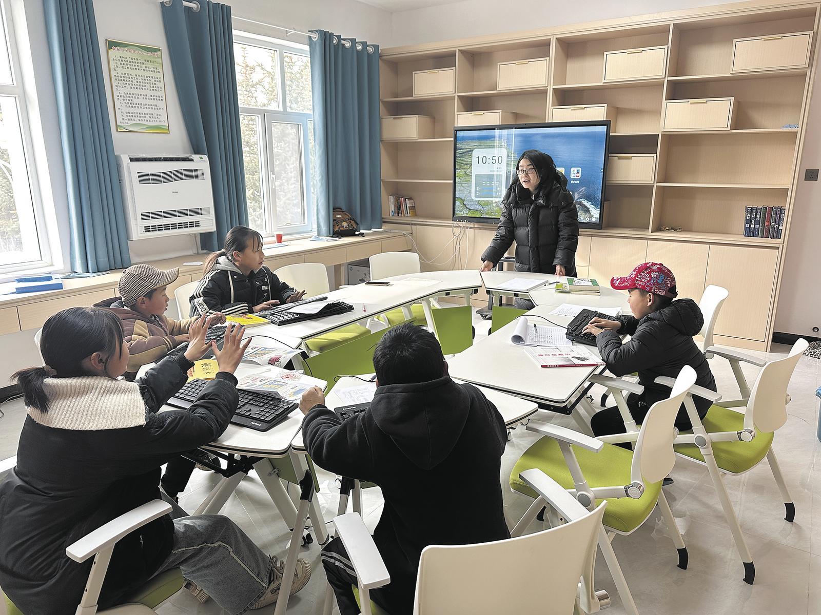 朱亞輝在圖書館給孩子們講解電腦鍵盤基礎(chǔ)操作。記者 劉祎 攝
