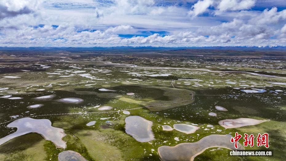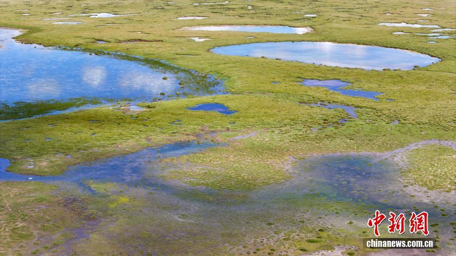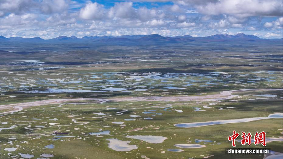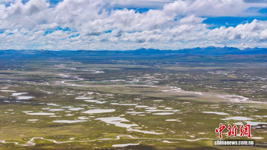8月22日,航拍中國三江源國家公園長江源園區(qū)最大的泥碳濕地——查旦濕地。(無人機(jī)照片)中新社記者 馬銘言 攝