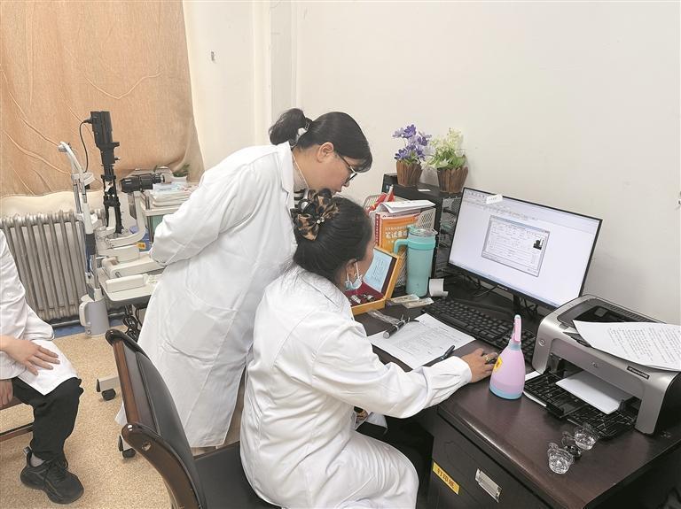 徐連那(左)指導年輕醫(yī)生工作。記者 馬振東 攝