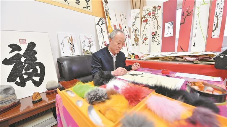 20多年的守藝路不易,張吉祥憑借著對(duì)絨毛畫的熱愛,讓這門瀕臨消失的小眾藝術(shù)重新煥發(fā)了光彩,他以山水、鳥獸、花草為創(chuàng)作主題,精心制作了300余幅絨毛畫作品。同時(shí),他還會(huì)在快手、抖音等網(wǎng)絡(luò)平臺(tái)發(fā)布絨毛畫作品,吸引更多人觀看。張吉祥看著學(xué)生制作時(shí)說:“傳承太重要了,需要靠年輕人接棒,把這份溫暖的手藝傳承下去?!?/p>