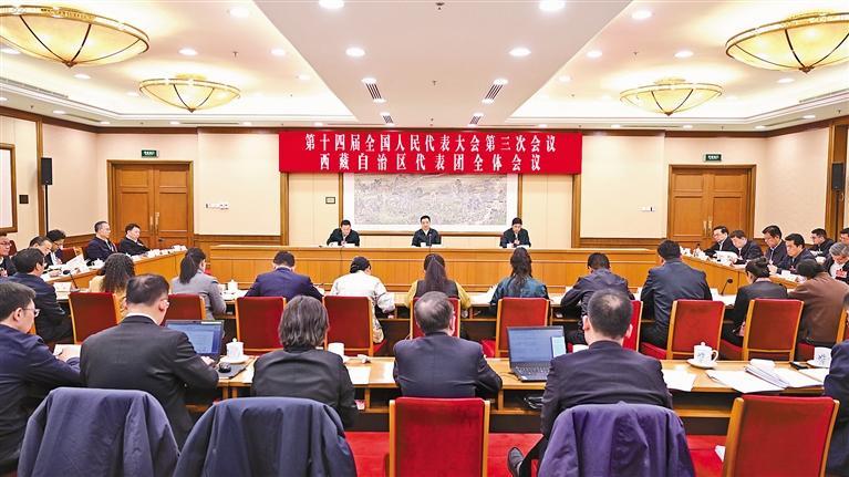 西藏代表團(tuán)團(tuán)長、自治區(qū)黨委書記王君正,西藏代表團(tuán)副團(tuán)長、自治區(qū)黨委副書記、自治區(qū)人大常委會(huì)主任嚴(yán)金海參加審議。西藏代表團(tuán)副團(tuán)長、自治區(qū)黨委副書記、自治區(qū)主席嘎瑪澤登主持。