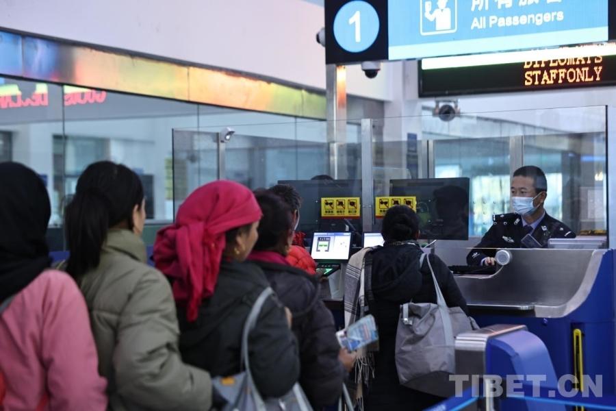 圖為聶拉木邊檢站民警驗(yàn)放出入境旅客 攝影:胡定熠