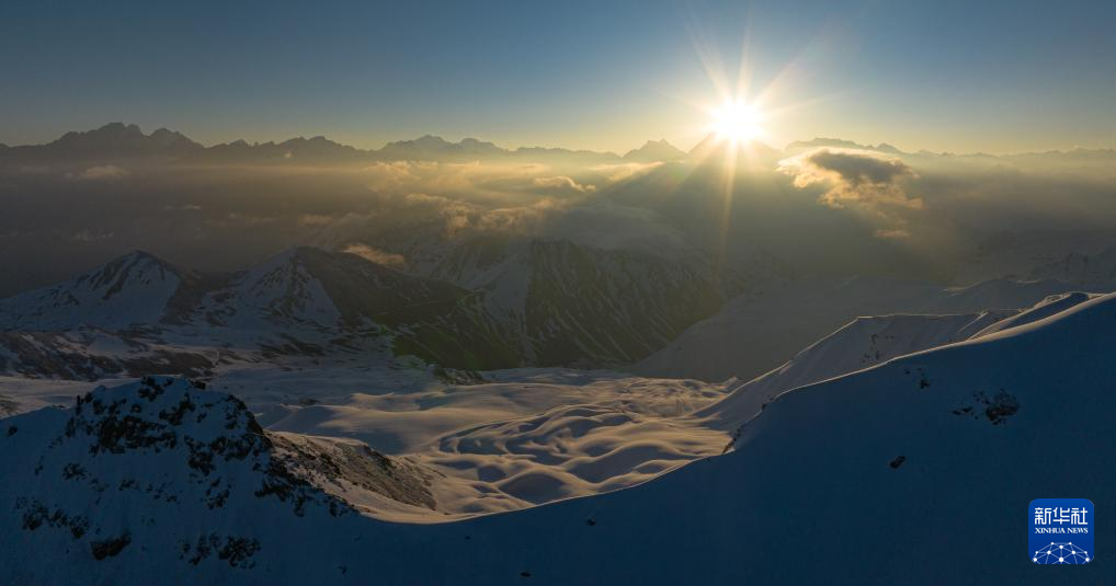 這是喜馬拉雅山脈的日出(4月17日攝,無(wú)人機(jī)照片)。新華社記者 洛卓嘉措 攝